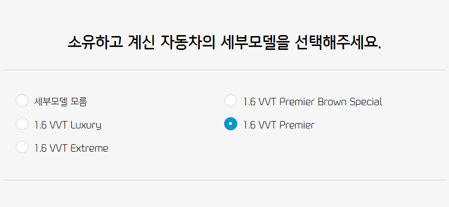 4. 차량의 세부모델 선택