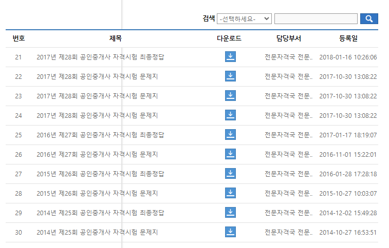 30회 이전 회차의 공인중개사 기출문제도 풀어보실 분은 큐넷 홈페이지에서 다운받으시면 되겠습니다.